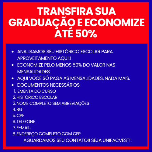 Um dos maiores diferenciais da Unifacvest, que traz alívio para o bolso do trabalhador, é a política de Custo Zero Adicional. Enquanto outras instituições lucram com imprevistos do aluno, aqui o foco é a sua formação: