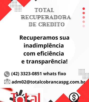 A Total Cobranças tem a ciência de que manter o foco em resultados é fundamental para obtermos satisfação de nossos clientes. Com isso, a Grupo Total atua de forma diferenciada na recuperação de ativos. O nosso objetivo é maximizar nossos resultados e minimizar a inadimplência de nossos clientes.